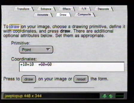 Now we will take the second image and make it in to a frame.Go to Image Magick,enter the URL,and select view.At the top of the next page,select draw.
